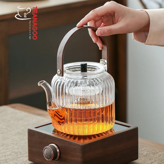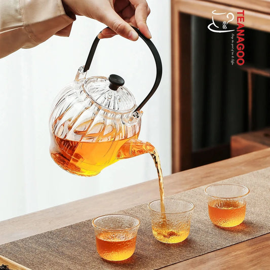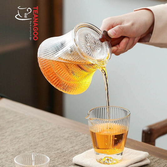 Vertical Stripes Thickened Glass Teapot Set, 1L / 35.3oz