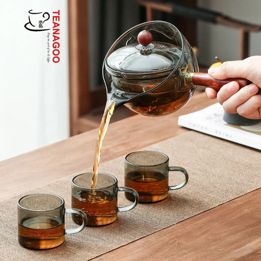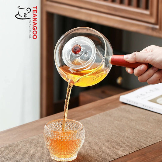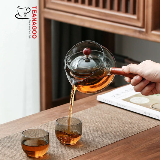 Heat Resisting Herbal Tea Glass Teapot with Rosewood Handle, 445ml / 15.7oz