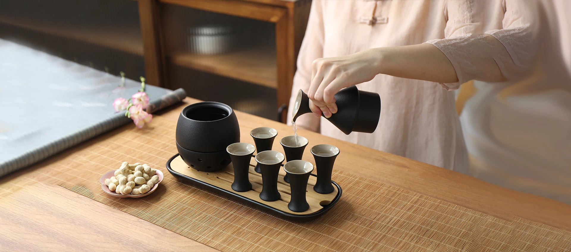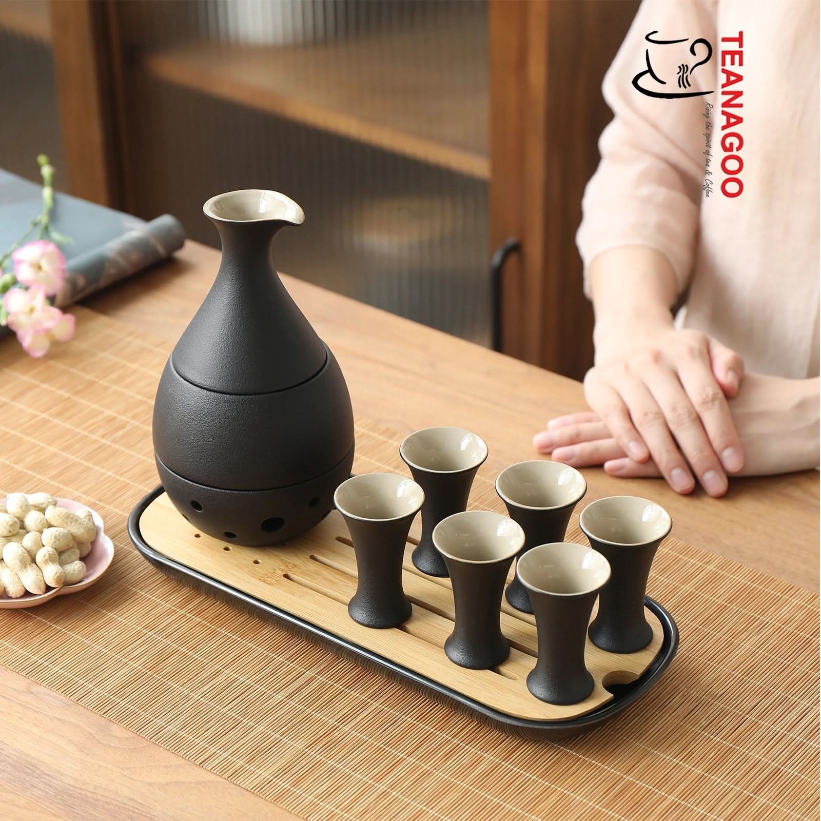 Saki Set made of pro-qrade ceramic clay, ideal beveled mouth design Carefe meet the sake cups with Creativecurved lip design very well. it's more heat-resistant and dishwasher & microwave safe.