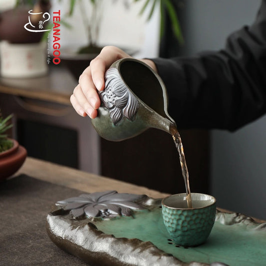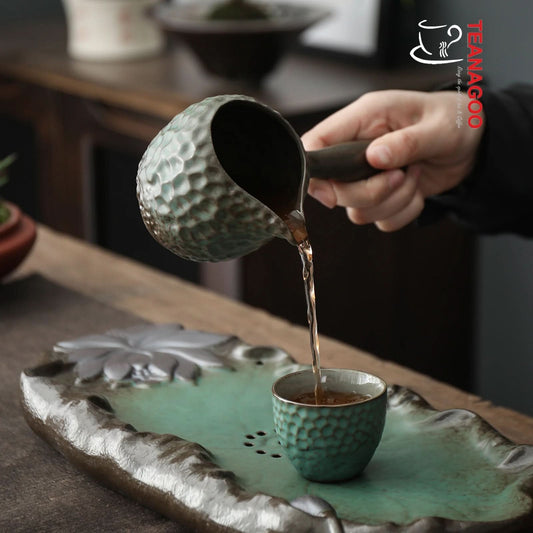Emerald Glazed Kiln Ceramic Fair Cup with Handle