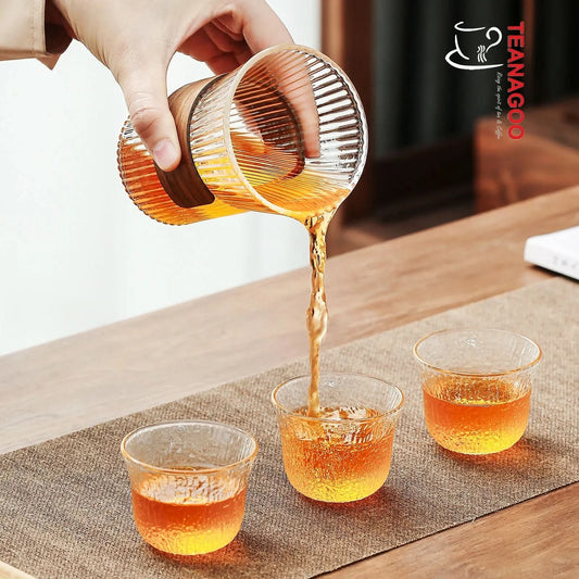 Vertical Stripe Glass Fair Cup with Anti-scald Bamboo Board, 250ml / 8.8oz