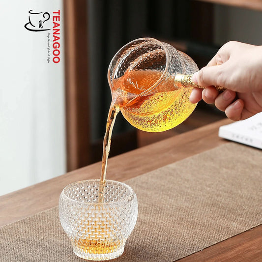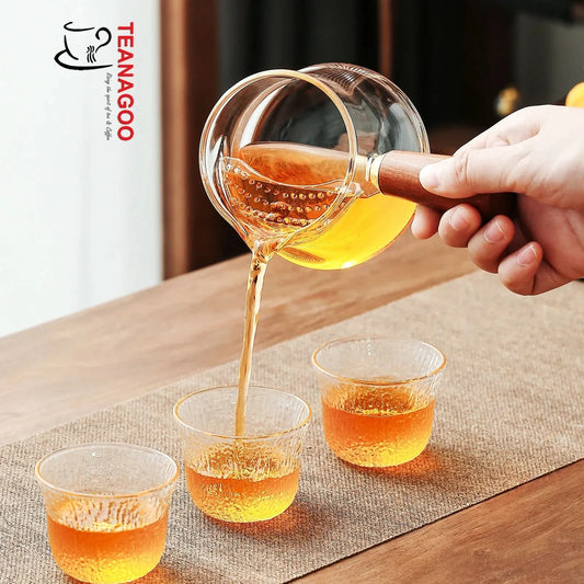 Heat-resistant Glass Fair Cup, with Wooden Handle & Filter Holes, 300ml / 10.6oz