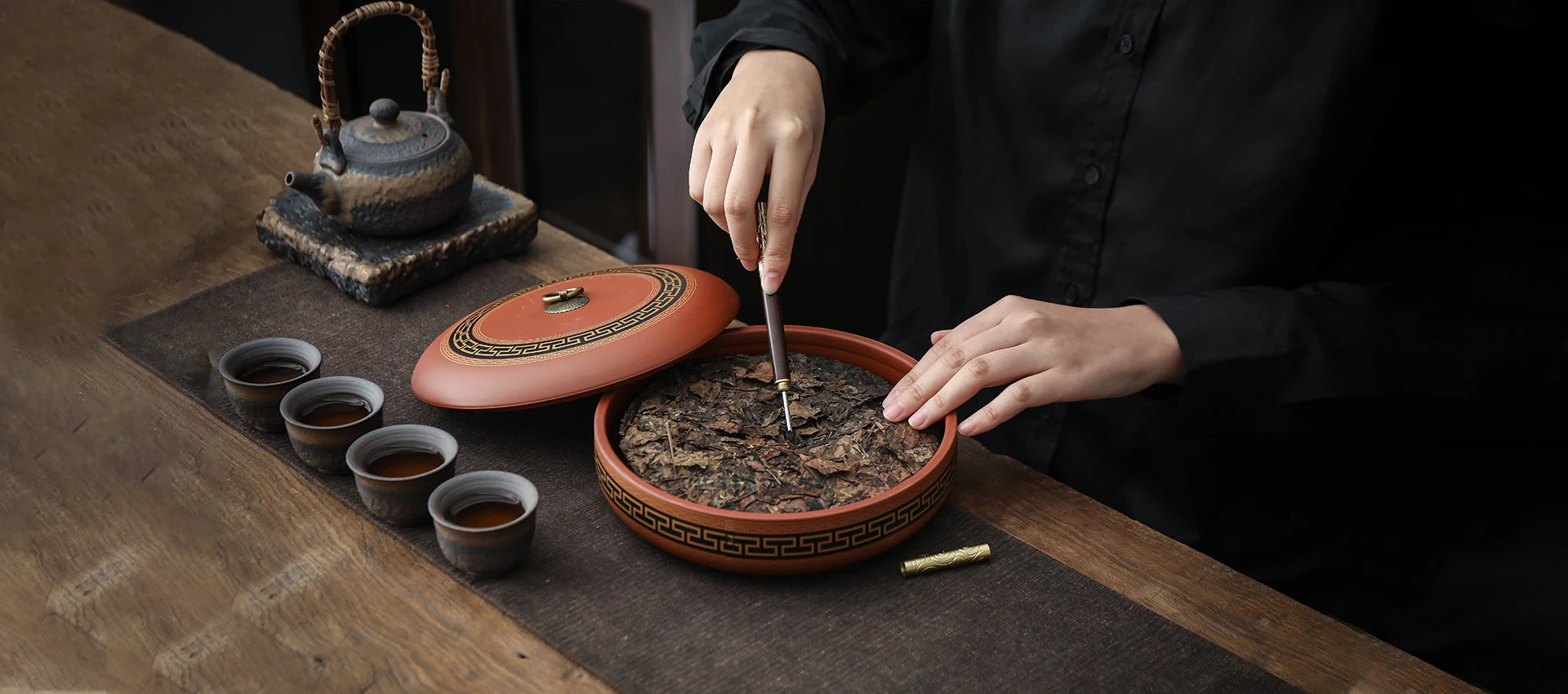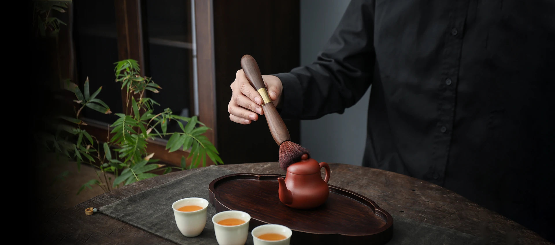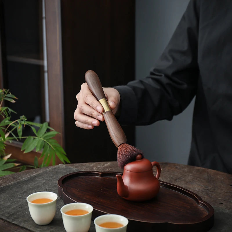 lt can be used as a teapot brush to nourish teapot and teapets, and the other function is a tea needle for prving tea cakes.