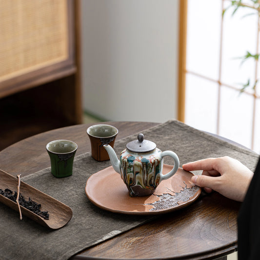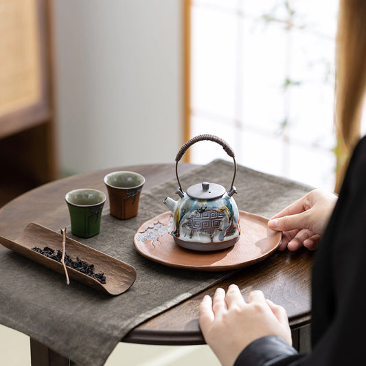 Ancient Script Bridge Handle ZEN Teapot Earth Tone 180ml