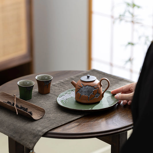 Ancient Script Bridge Handle ZEN Teapot Bamboo Green 180ml