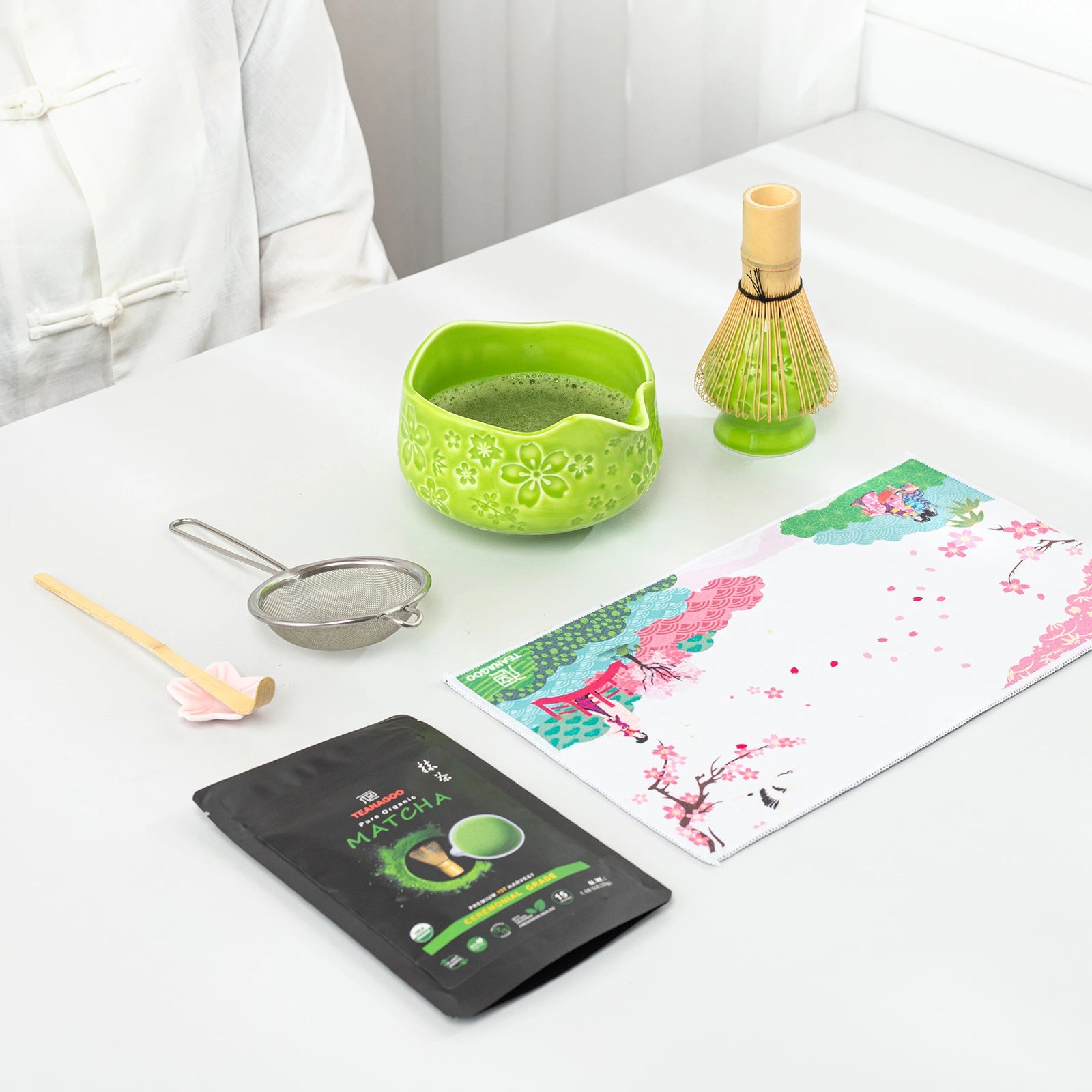 Water temperature is very important. If the water is too hot, it will alter the umami taste of matcha. The optimal temperature in winter is 167-185°F and in the summer 158-176°F.