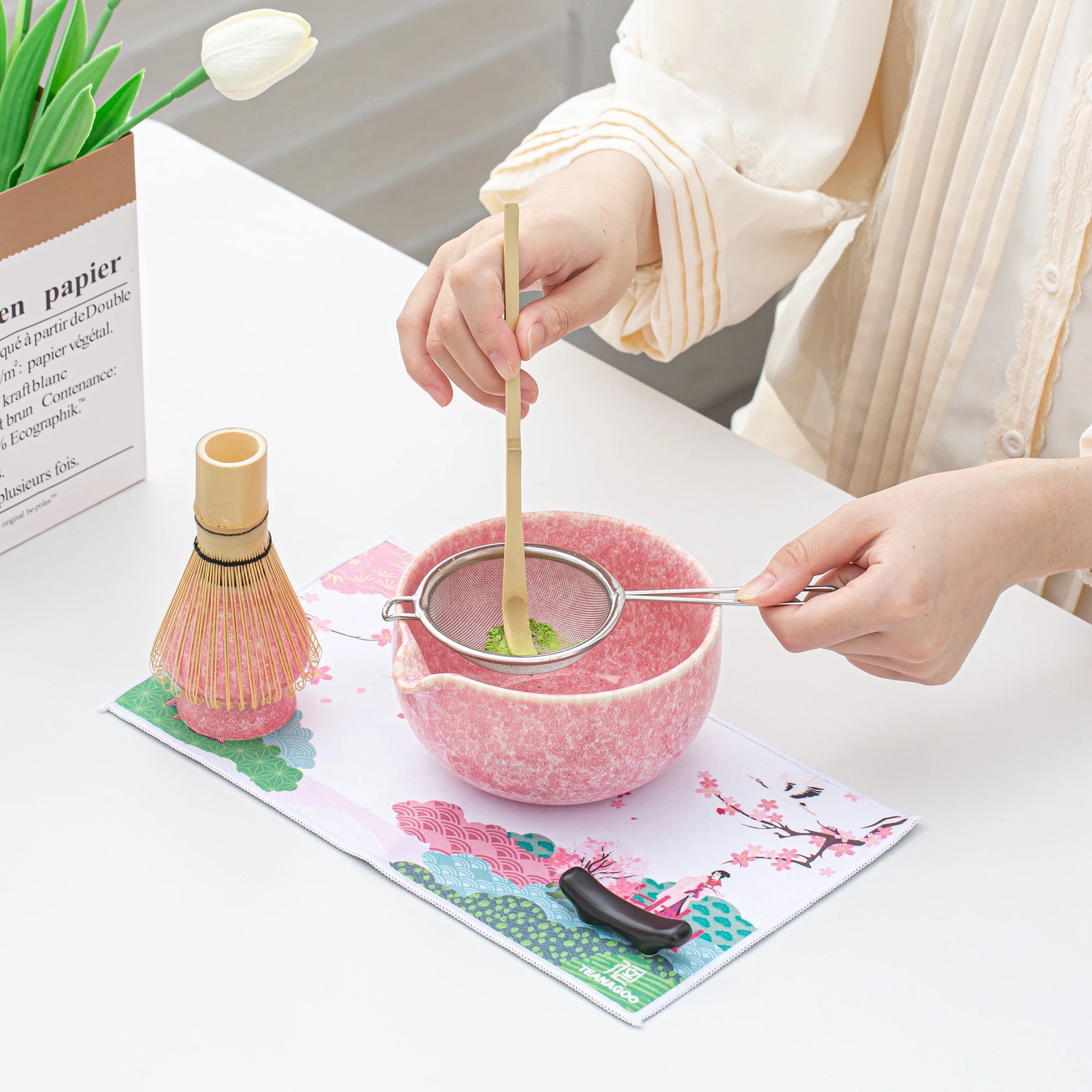Water temperature is very important. If the water is too hot, it will alter the umami taste of matcha. The optimal temperature in winter is 167-185°F and in the summer 158-176°F.